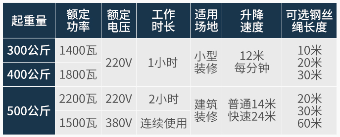 此產(chǎn)品體積小、重量輕、小巧操作方便,采用380V/220V電壓,適用于裝潢、吊運(yùn)作業(yè)、安裝設(shè)備、搬家公司、工廠、車間、輕工、重工、維修、倉(cāng)庫(kù)、物流等;